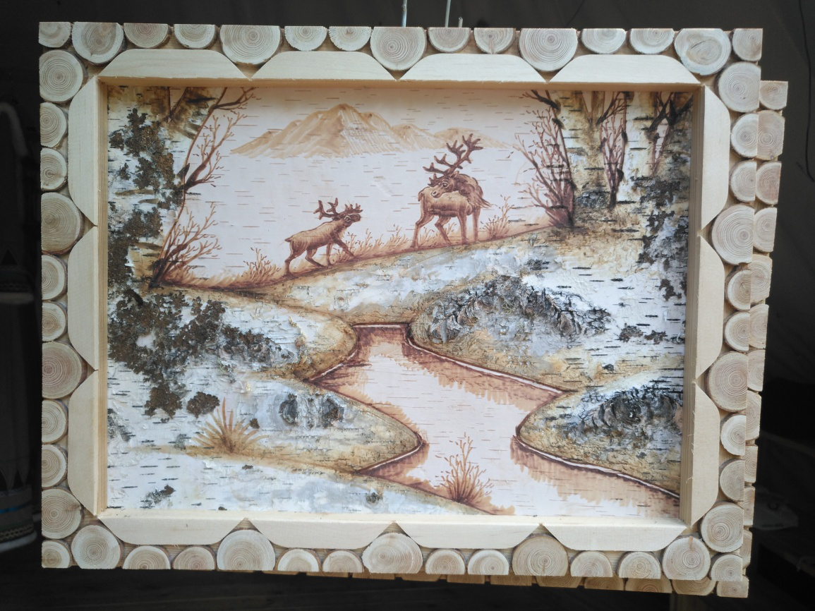 都說白樺樹通身都是寶。看,用白樺樹皮做的工藝畫,美輪美奐,讓人愛不釋手。