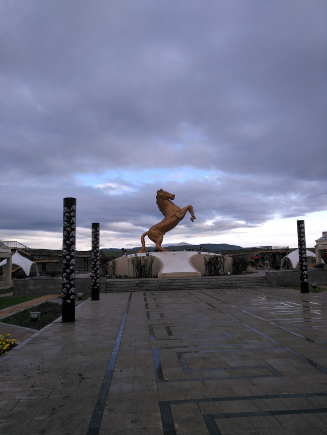 清晨的室韋小鎮界河廣場,天馬行空。許是被昨夜的雨神嚇到了,今天的太陽姑娘躲在云層里羞羞答答的,就是不肯露個全臉。