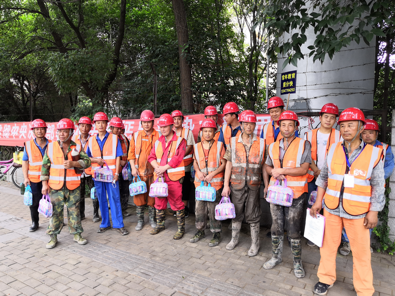 張志鋮、賀錦美一行對南京地鐵九號線勘察項目、南京仙林蘇寧廣場樁基施工勘察項目上的工作人員送上了防暑降溫用品、礦泉水等慰問品,關切地詢問了一線作業人員的生產生活情況(見照片8~9)。