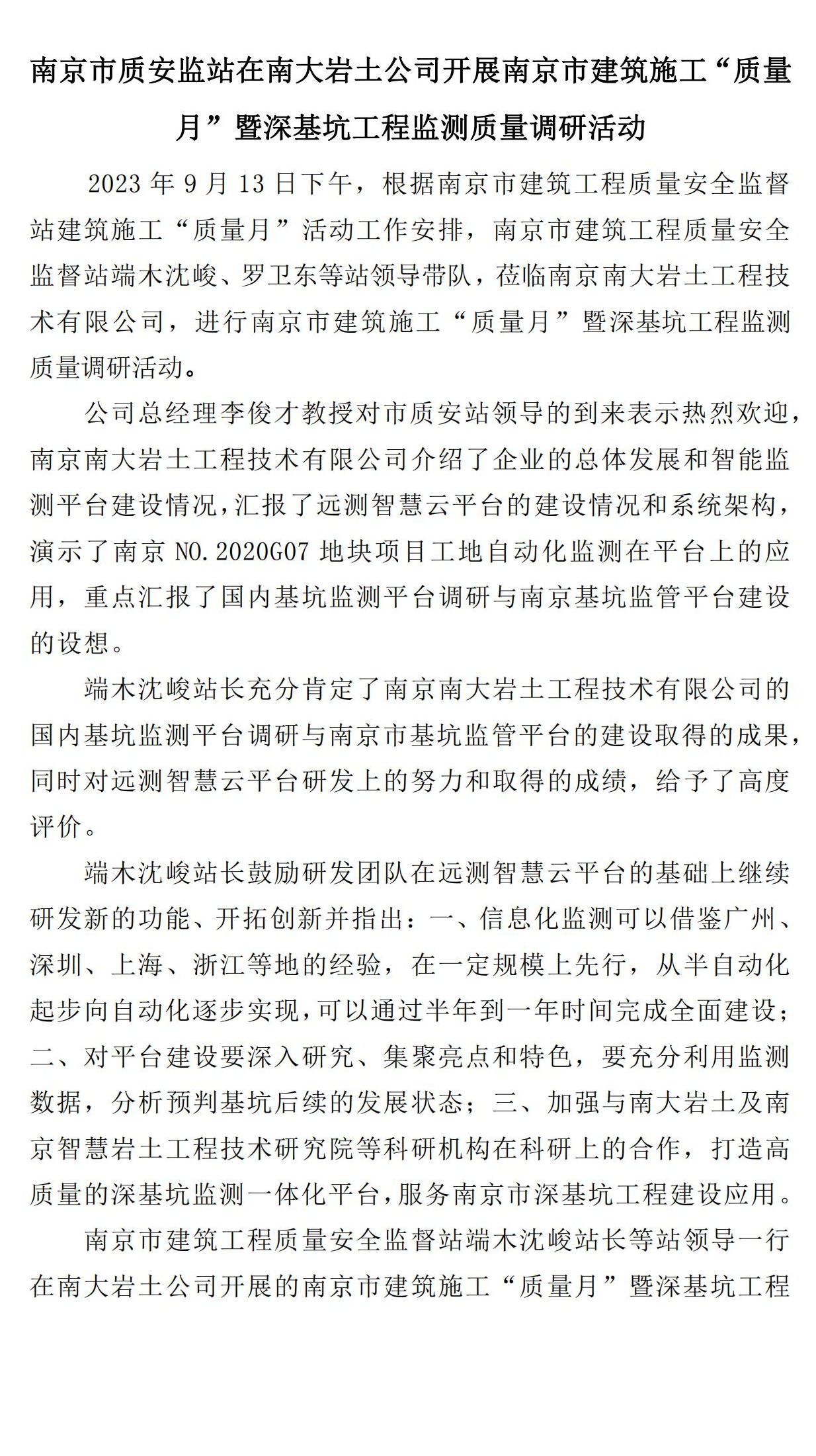 南京市建筑施工“質量月”暨深基坑工程監測質量調研活動